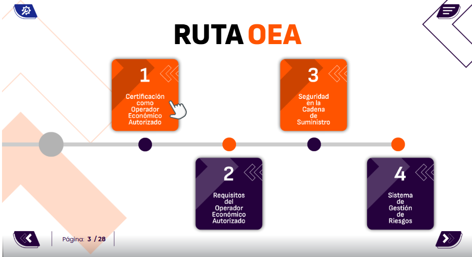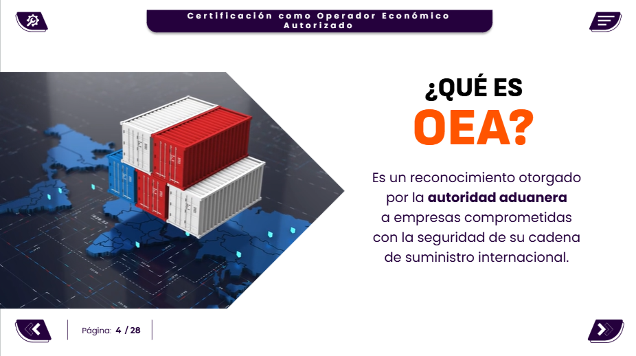 Comprender la importancia de la certificación OEA, identificar los requisitos esenciales y aprender a implementar las fases del Sistema de Gestión de Riesgos.