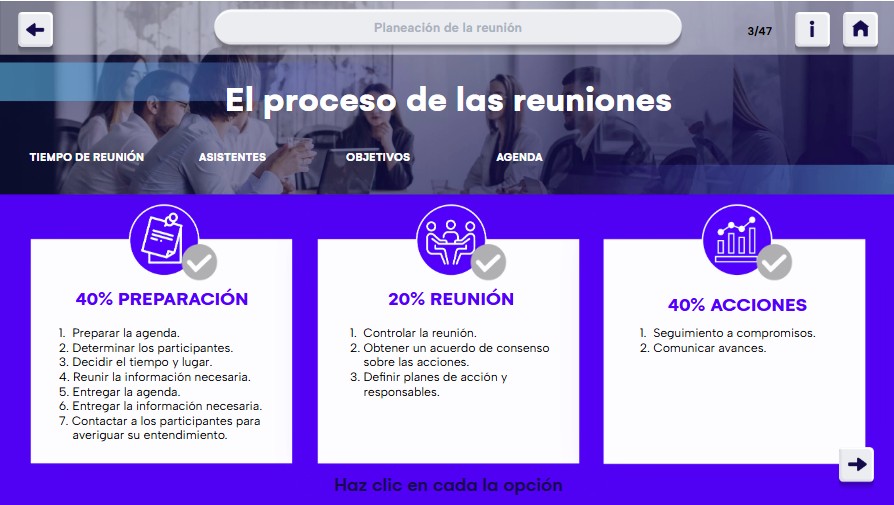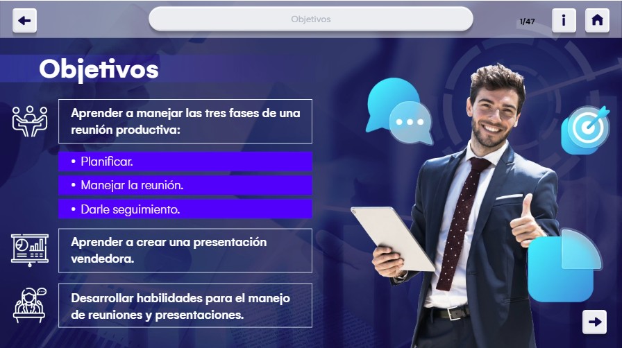 Capacitar en la planificación y ejecución de reuniones y presentaciones productivas.
