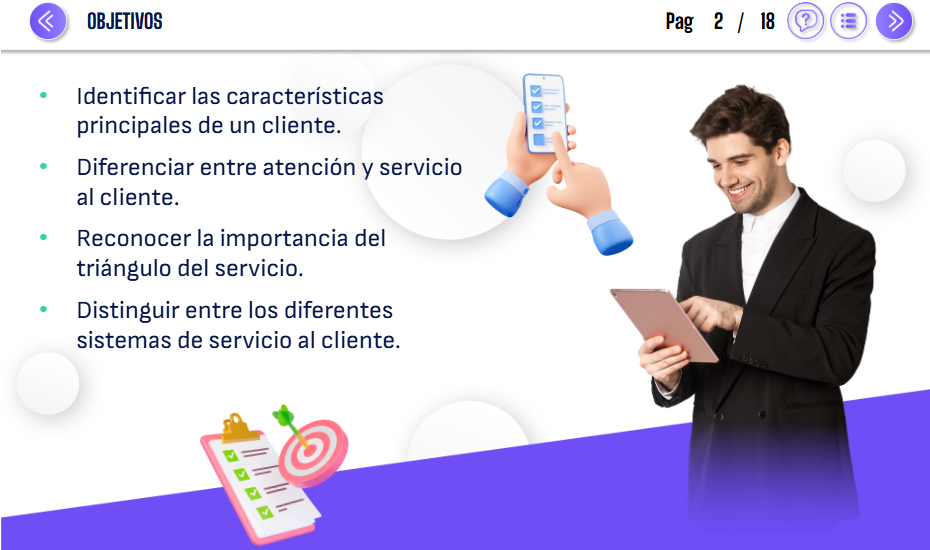 Reconocer las características principales de un cliente, diferenciar entre atención y servicio, y comprender el impacto del mal servicio.