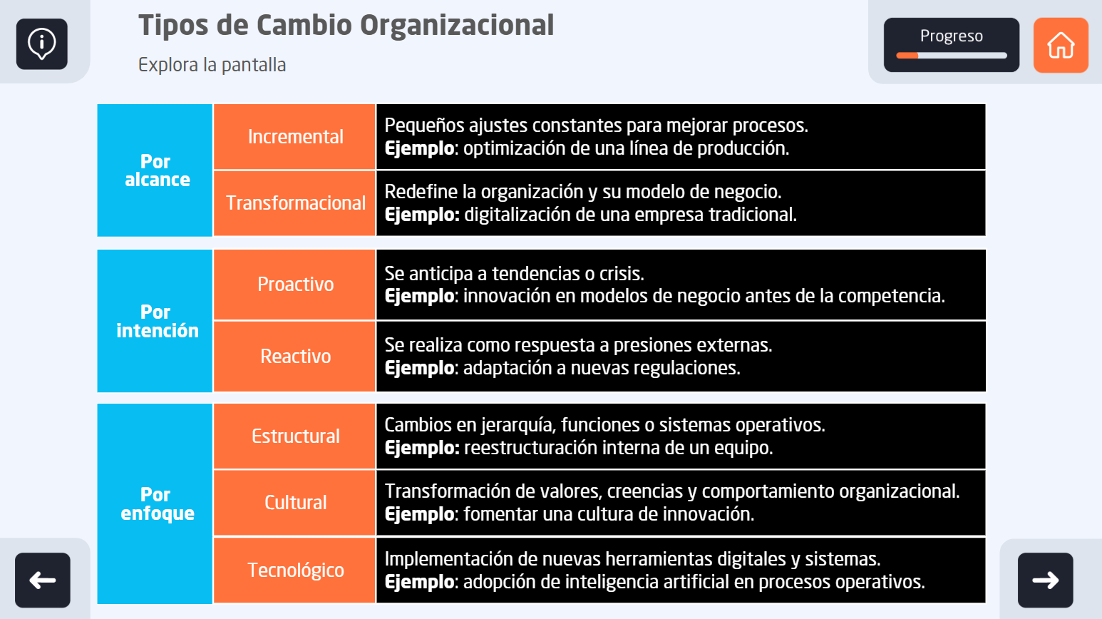 Comprender y aplicar estrategias efectivas de gestión del cambio organizacional, utilizando modelos y herramientas clave para minimizar la resistencia, facilitar la adopción de nuevas prácticas y garantizar la sostenibilidad del cambio en cualquier contexto empresarial.