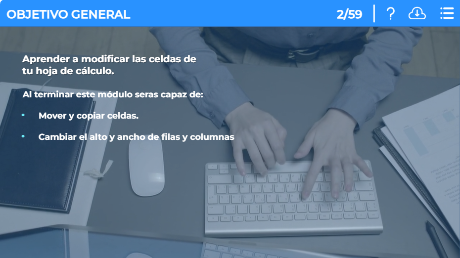 El diseño instruccional de este curso se orienta a la educación de adultos, reconociendo la experiencia previa de los estudiantes y fomentando tanto la autogestión como la aplicación práctica del conocimiento en contextos reales. Los contenidos se organizan en unidades de microaprendizaje secuenciales y se enriquecen con recursos multimedia interactivos, tales como videos explicativos, simuladores, infografías, lecturas complementarias en formato PDF y evaluaciones formativas.