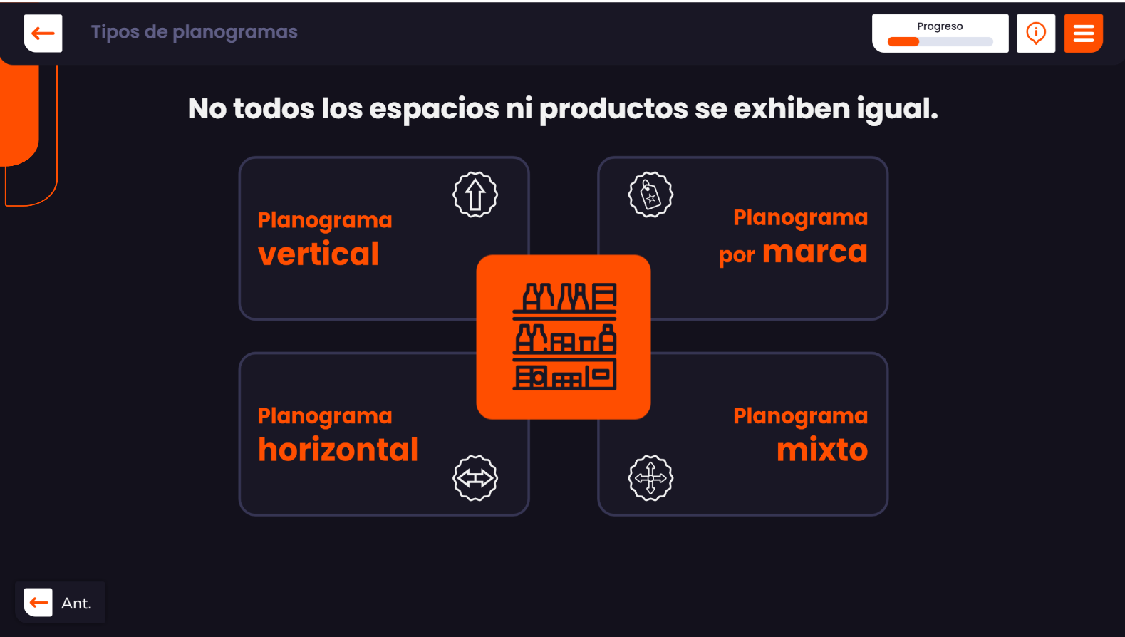 Tipos de planogramas y criterios de selección.